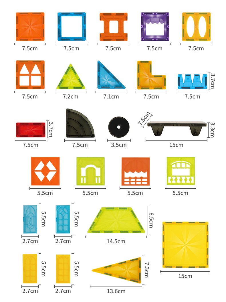 Ta klocki magnetyczne są w pełni kompatybilne ze wszystkimi seriami LELINO o tym samym rozmiarze, a także z większością klocków magnetycznych innych marek, które wykorzystują format 7,5 × 7,5 cm.