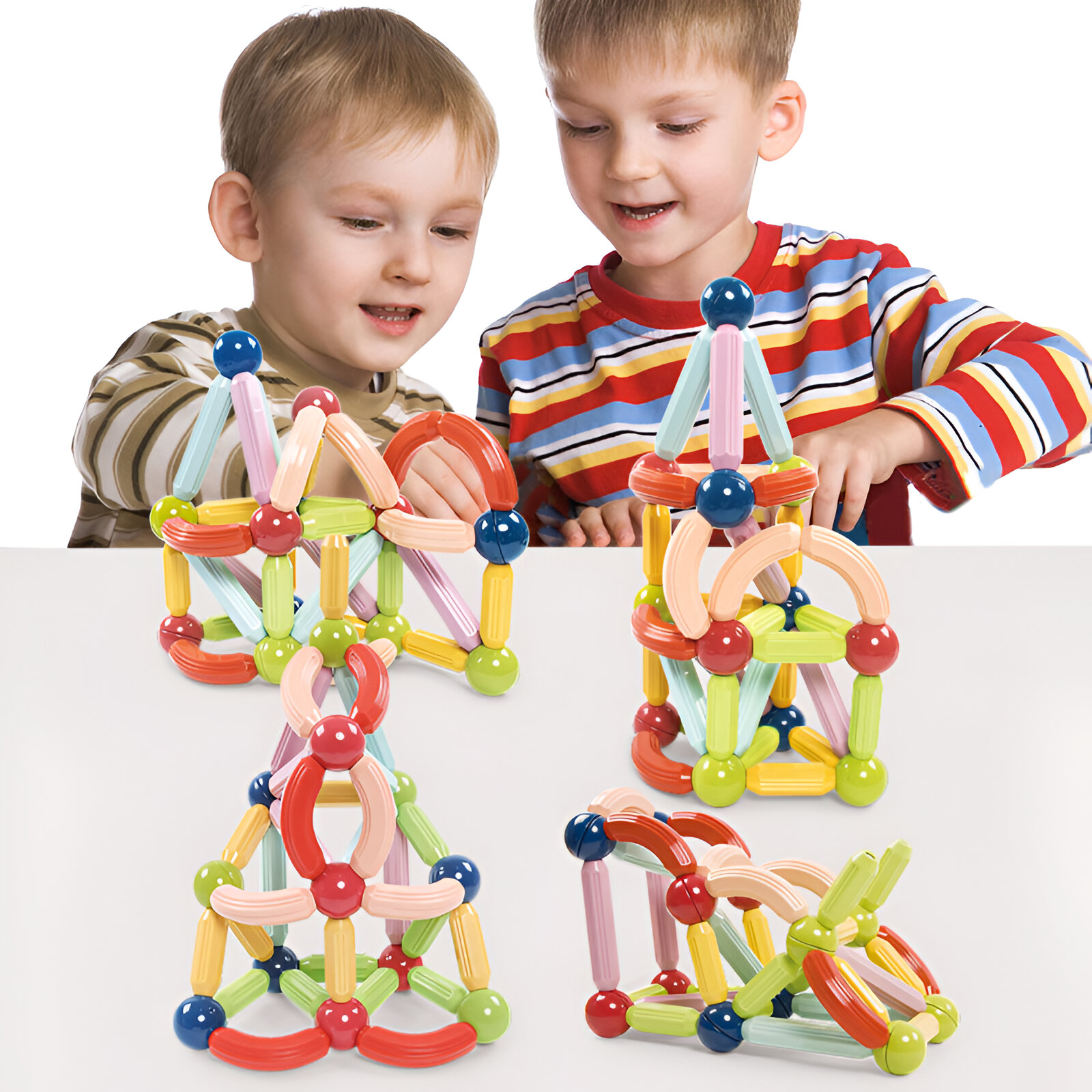 Magnetyczne patyczki i kulki pozwalają tworzyć zarówno proste modele, jak i skomplikowane struktury geometryczne - idealne dla dociekliwych dzieci oraz małych technicznych konstruktorów.